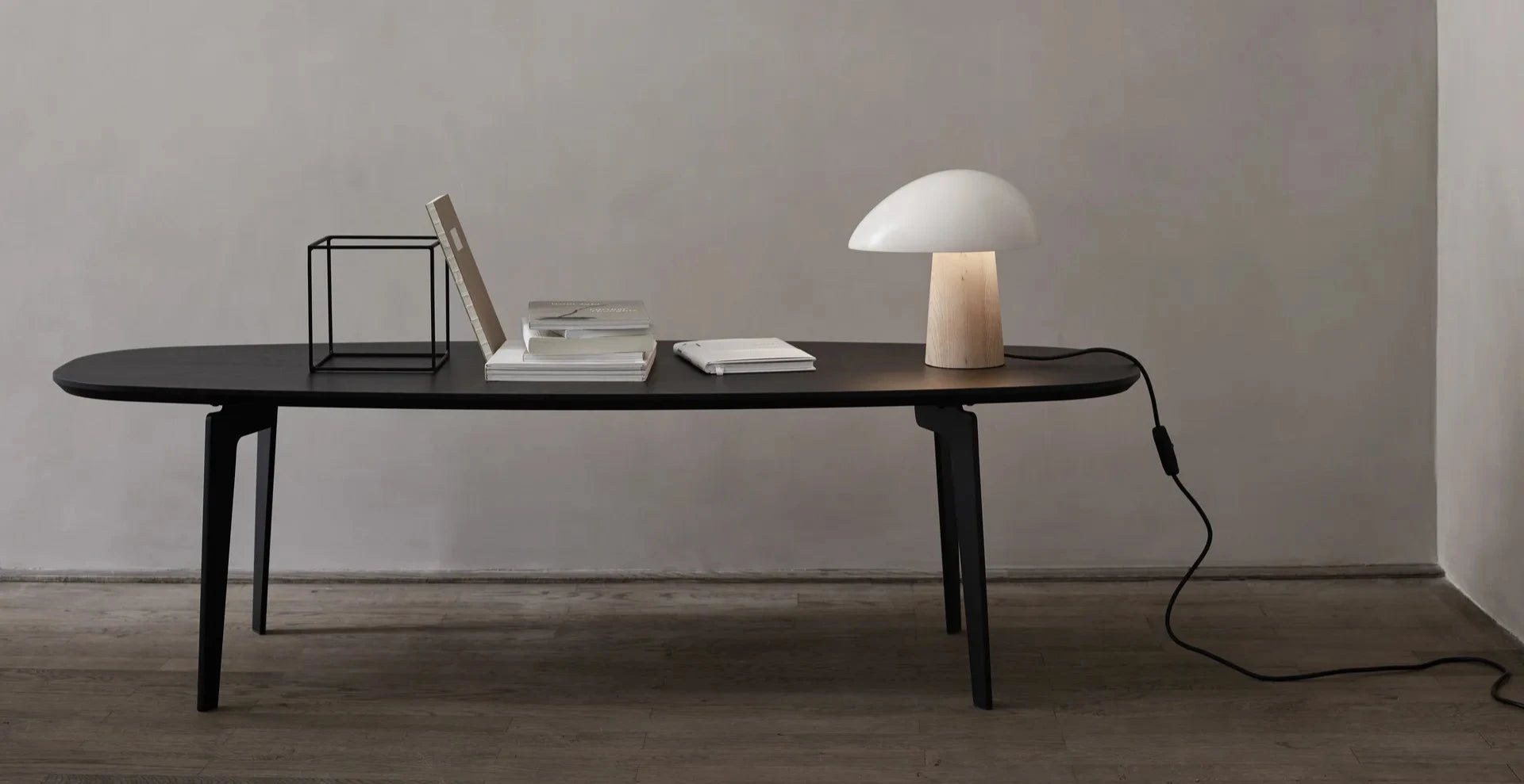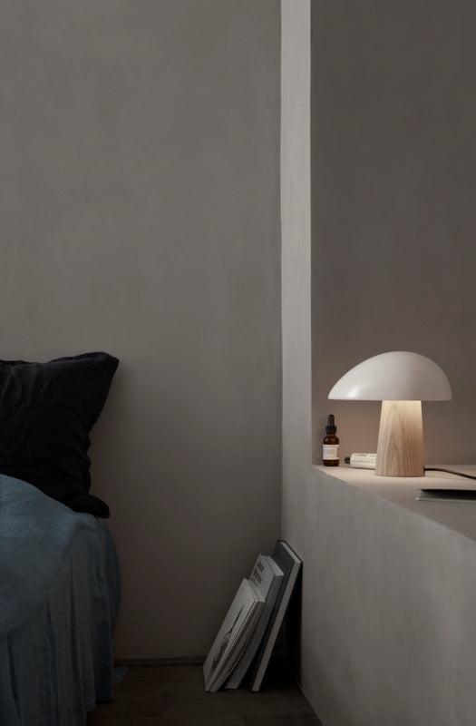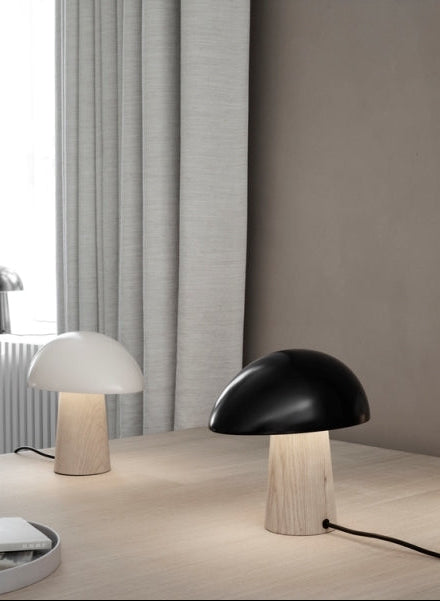 Capella Table Lamp is a sleek, minimalist lighting piece inspired by the natural shape of a mushroom. Its smooth, rounded shade crafted from polished chrome creates a soft, diffused glow, while the body made from high-quality timber provides warmth and stability. Available in black and white finishes, Capella seamlessly fits into modern interiors, enhancing spaces such as living rooms, bedrooms, or offices. Its simple yet striking design adds a touch of understated sophistication, making it a perfect accent piece. Elevate your environment with the timeless elegance and calming presence of the Capella Table Lamp.